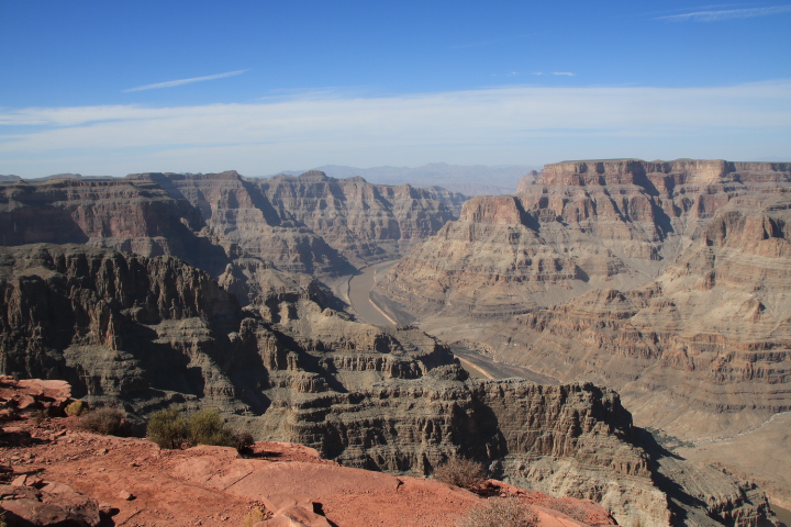 Abbiamo optato per la seconda scelta, cioè quella di dirigerci verso il West Rim del Grand Canyon con la nostra auto, distante 125 miglia, un paio d’ore, dalla città di Las Vegas. Una volta imboccata la route 25 che si addentra nell’area semi desertica che circonda il canyon ed iniziate a vedere le fantastiche formazioni rocciose rossastre tipiche del Grand Canyon, la paura che le mie alte aspettative fossero deluse ha preso il sopravvento. In rete, infatti, non avevo trovato molte opinioni positive di questo View Point, forse per la sua relativamente giovane età o forse perché chi fa un tour dell’ovest partendo da Las Vegas prosegue in direzione est direttamente verso l’accesso principale del Parco e poi verso la Monument Valley o lo Utah.