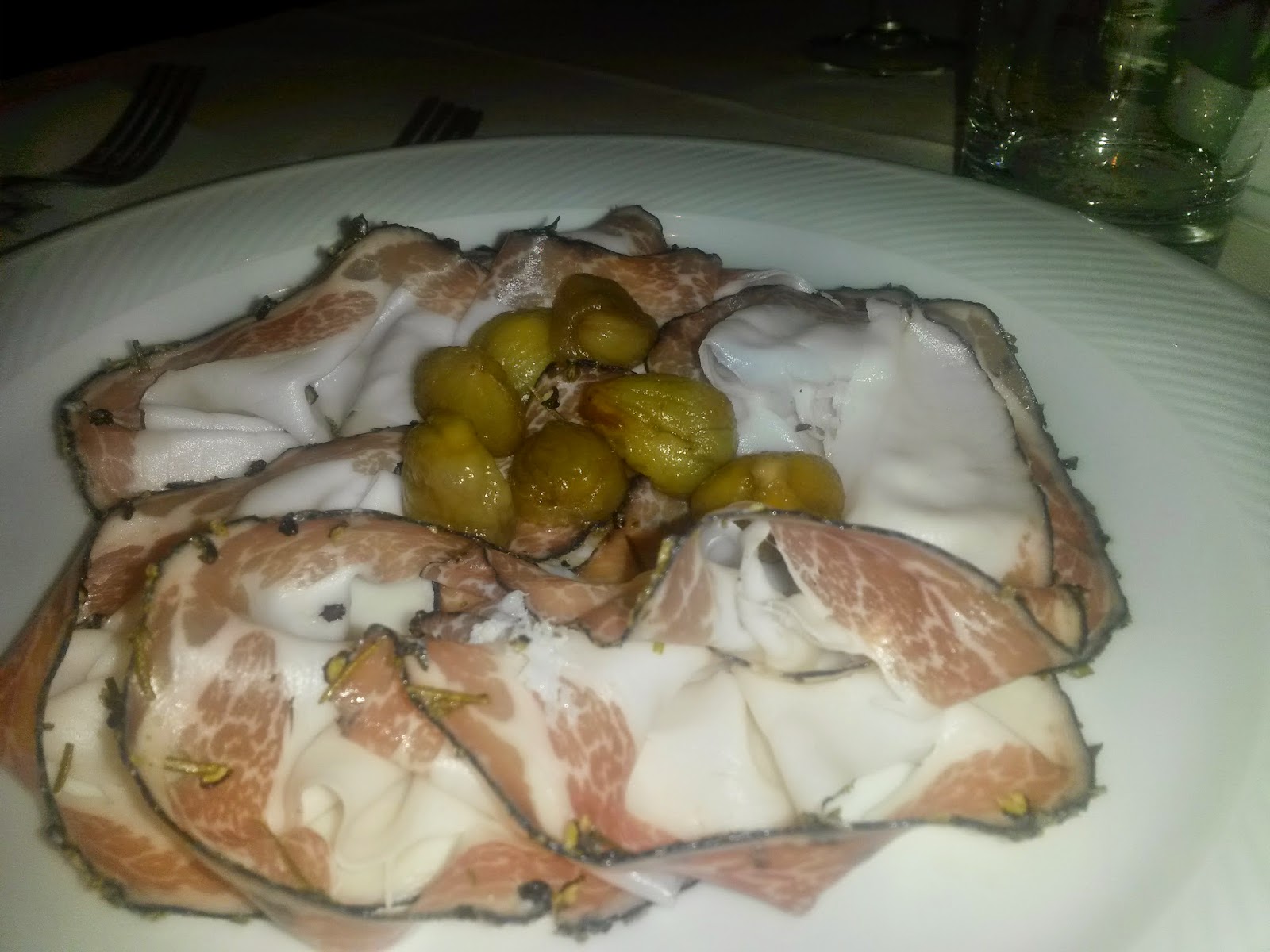 Personalmente non amo moltissimo il lardo, ma quando ho assaggiato l’antipasto proposto alla Trattoria Castello di Prato Sesia ho dovuto ricredermi !! Lardo stagionato al nebbiolo delle colline Novaresi e castagne al miele… gustossimo e molto azzeccato l’abbinamento con le castagne. Non vi viene appetito soltanto a guardare la foto???