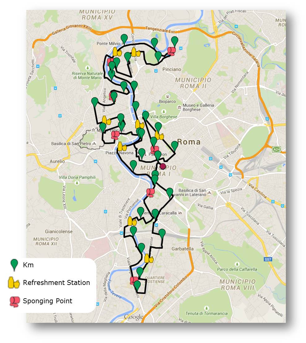 I sampietrini rendono il percorso difficile anche se non si corre, ma fa parte del fascino di Roma, divisa fra splendidi pregi e estenuanti difetti 😉
