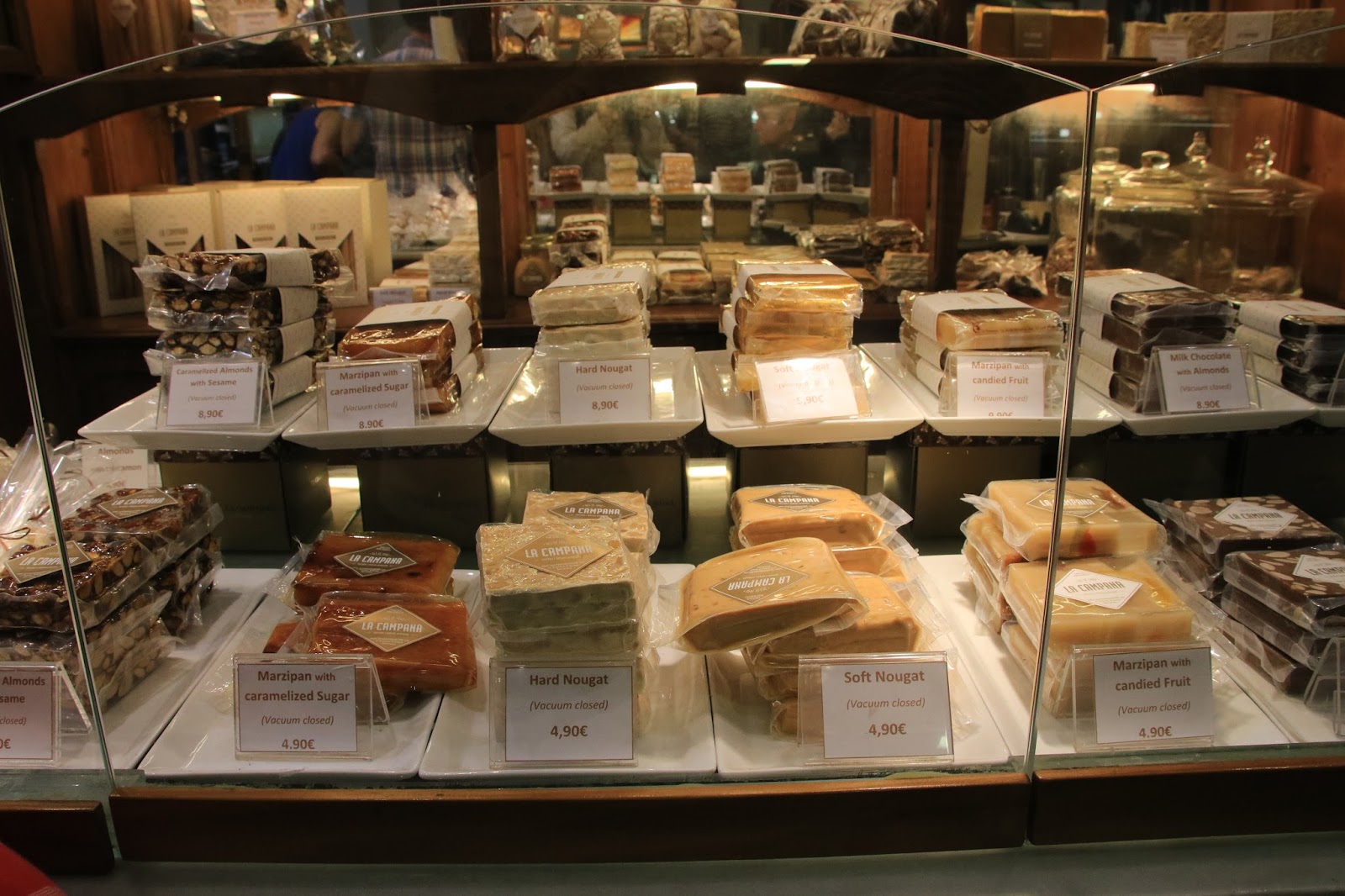 Raggiungiamo quindi la Torroneria e Gelateria La Campana, fondata nel 1890 da una famiglia proveniente da Jijona, la patria del torrone e portata avanti con gli stessi ideali di prodotti tradizionali e di alta qualità per oltre 120 anni. Qui assaggiamo un torrone con mandorle tritate ed uno molto più particolare: Turrón de Yema Quemada cioè alla Crema Catalana.