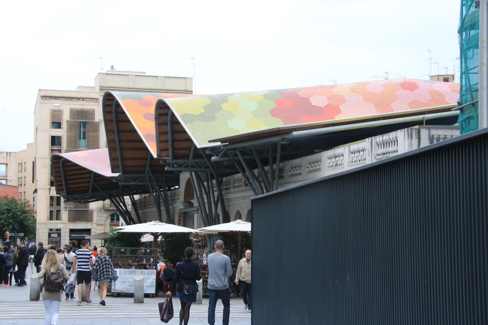 Altra tappa in pieno Born è il Mercato di Santa Caterina, che deve il suo nome al Monastero che sorgeva in questo isolato ed i cui resti sono visibili proprio all’ingresso. L’edificio, ristrutturato dagli architetti Enric Miralles e Benedetta Tagliabue ed inaugurato nel 2005 è stato un intervento di recupero architettonico molto apprezzato dai turisti ma anche dagli abitanti della Ciutat Vella. La sua particolarità è sicuramente il tetto irregolare e curvilineo il cui effetto pixelato è dato da una gigantografia di una foto di frutta e verdura mediterranea stampata su 325.000 piastrelle colorate: un evidente omaggio all’architetto più rappresentativo della città, Gaudì.