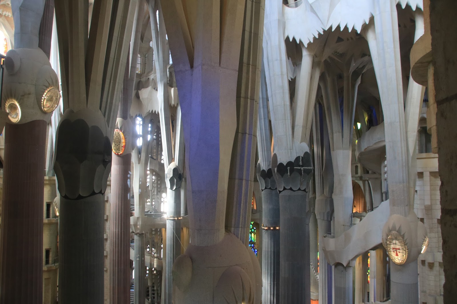 La navata principale fu progettata come una specie di bosco, le colonne infatti partono da terra come dei tronchi di alberi che biforcandosi vanno a sorreggere il soffitto di volte a forma di iperboli intrecciate.