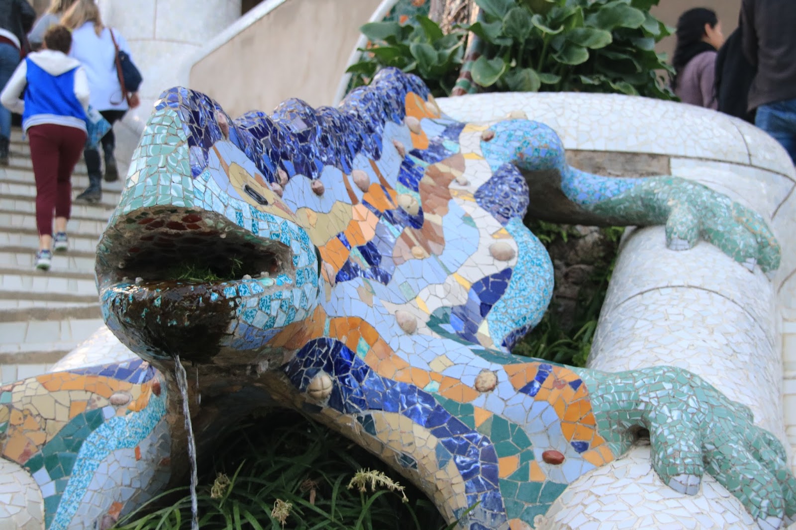Insieme ad elementi architettonici classici quali ponti, scale, colonne, piazze e panchine al Parc Guell sono le sculture con motivi animali ricoperte di mosaici di pietre e cristallli colorati a fare da padroni, la più celebre è sicuramente la salamandra all’ingresso del parco che ne è diventata il simbolo.