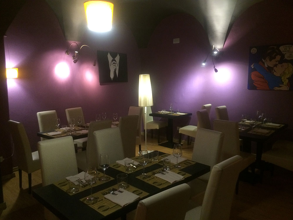E’ un ristorantino in centro molto intimo, con pareti viola, il mio colore preferito, l’arredamento e la musica di sottofondo erano perfetti, proprio quello che volevamo per un pranzo romantico!