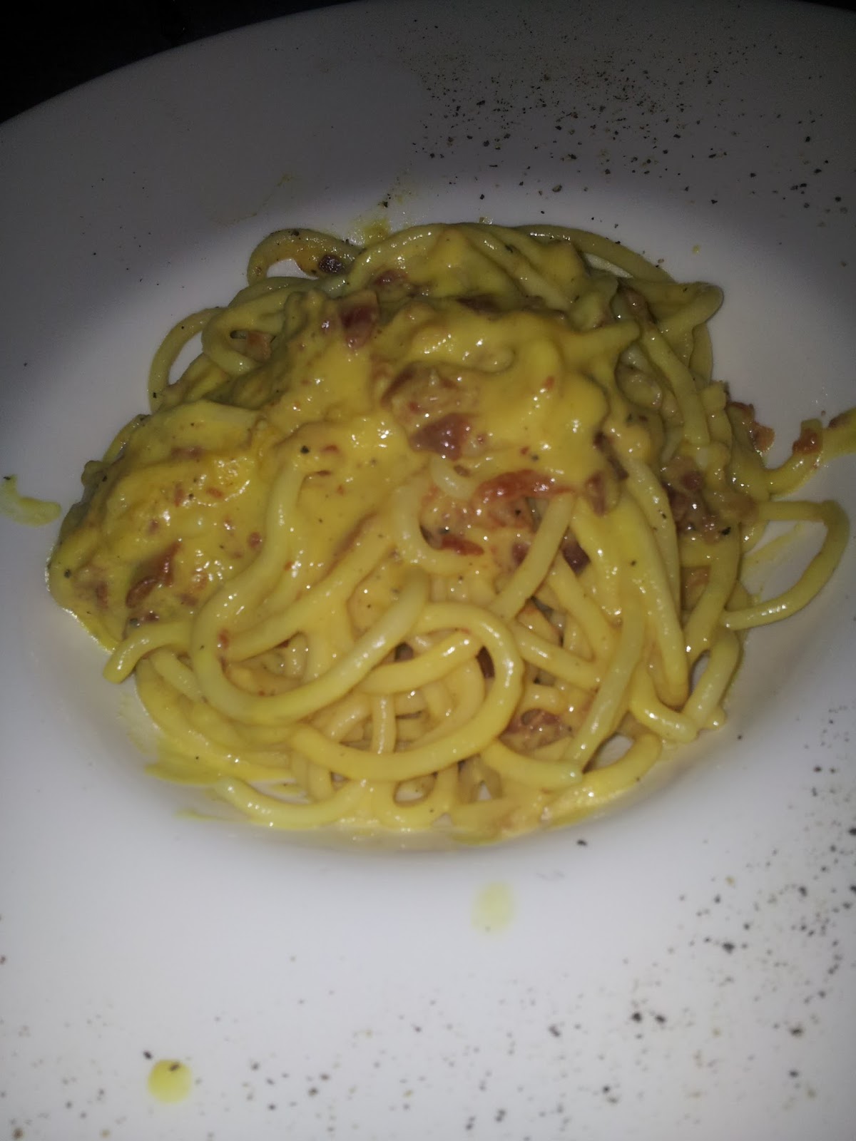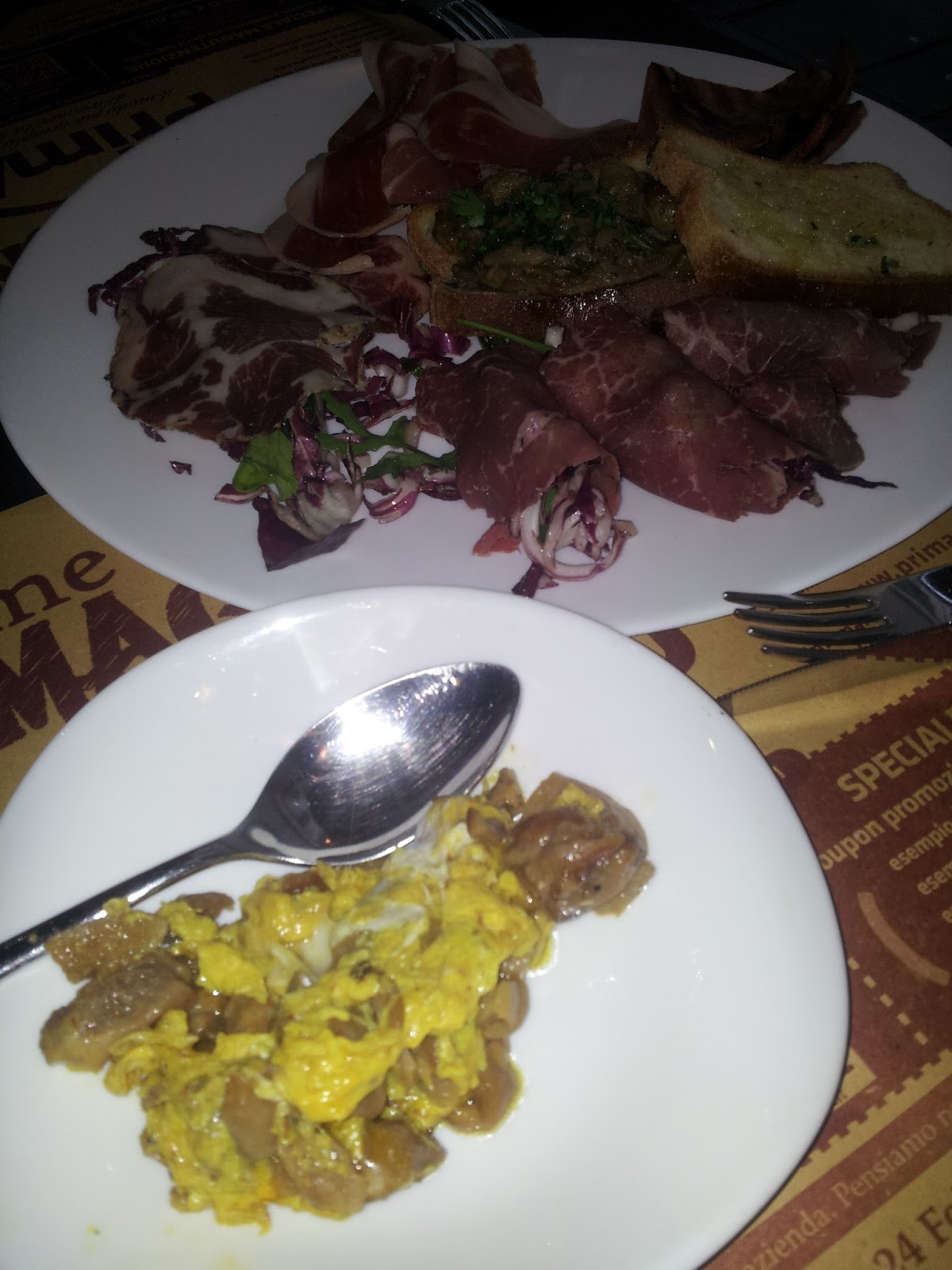 Ma veniamo al menù, che è scritto in un taccuino; è possibile ordinare quasi tutto senza glutine, noi abbiamo provato l’antipasto misto versione senza glutine e senza formaggi (perchè l’amore è anche sacrificio) e ci hanno portato pane caldo e lo strapazzo di uova con funghi porcini; poi ci siamo lasciati tentare dal fuori menù, fettuccine senza glutine al ragù d’oca, e dalla classica carbonara, veramente ben fatta!