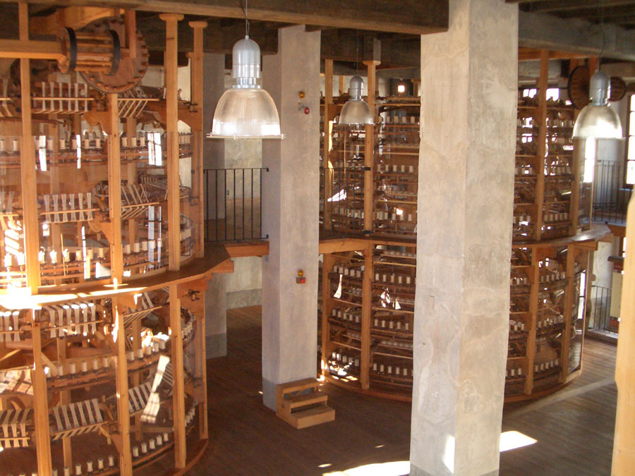 Siamo in Francia nella seconda metà dell’800 e le macchine italiane per la filatura della seta sono le più all’avanguardia, perchè già duecento anni prima, soprattutto a Bologna, era stato progettato il torcitore circolare ad energia idraulica che riusciva a torcere un filo talmente sottile chiamato ”organzino di seta sovrafine”.