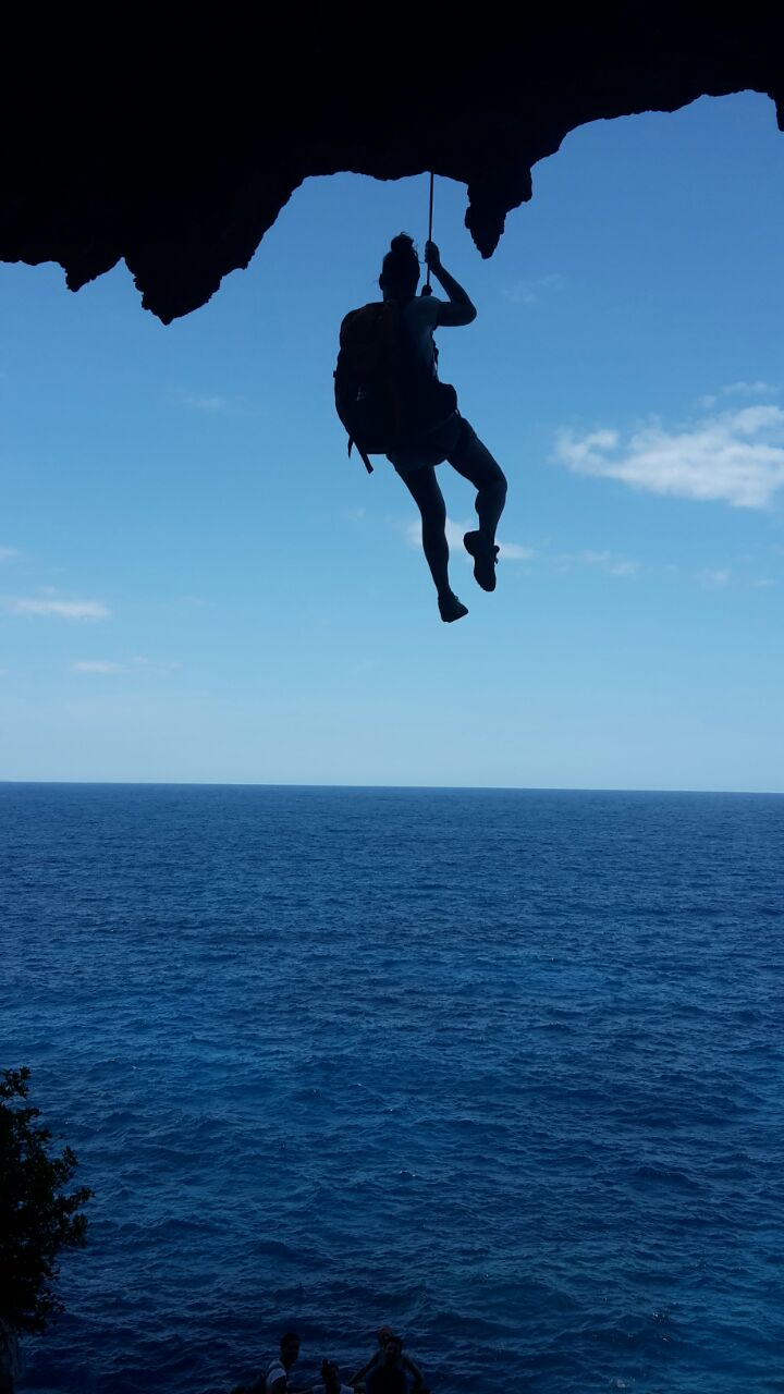 scogliera, la grotta delle capre che si attraversa, la ferrata che porta a