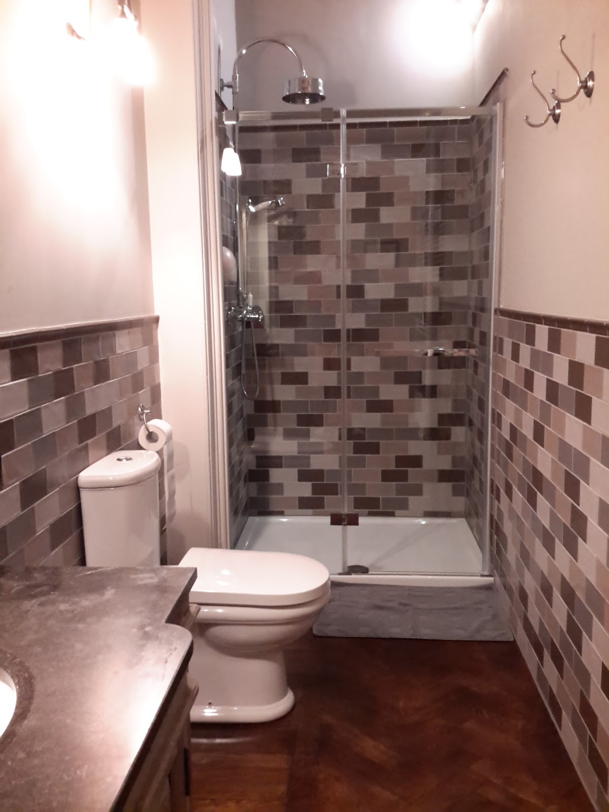 doccia enorme con getti di vario tipo e pressione ottima. Forse una piccola