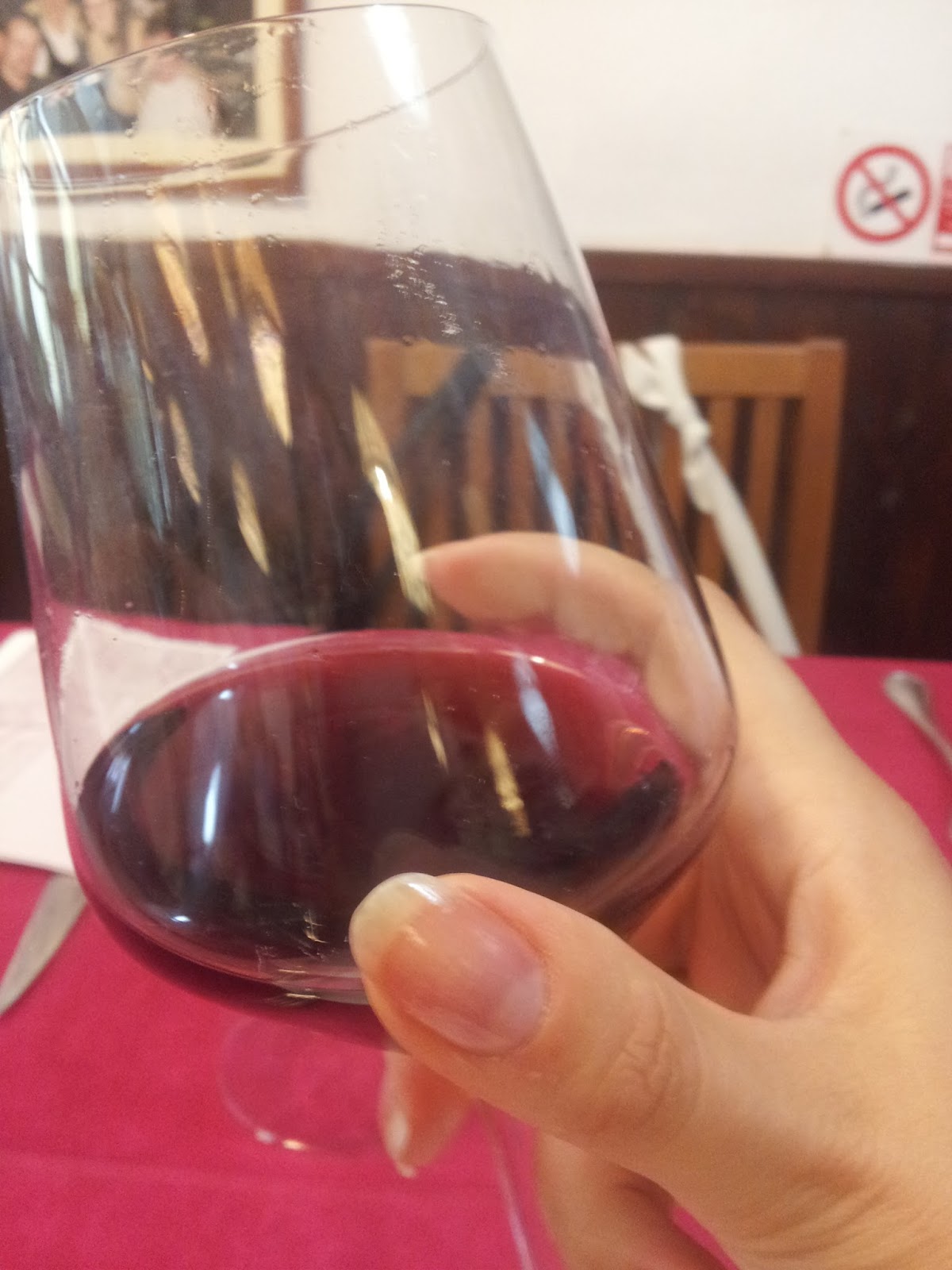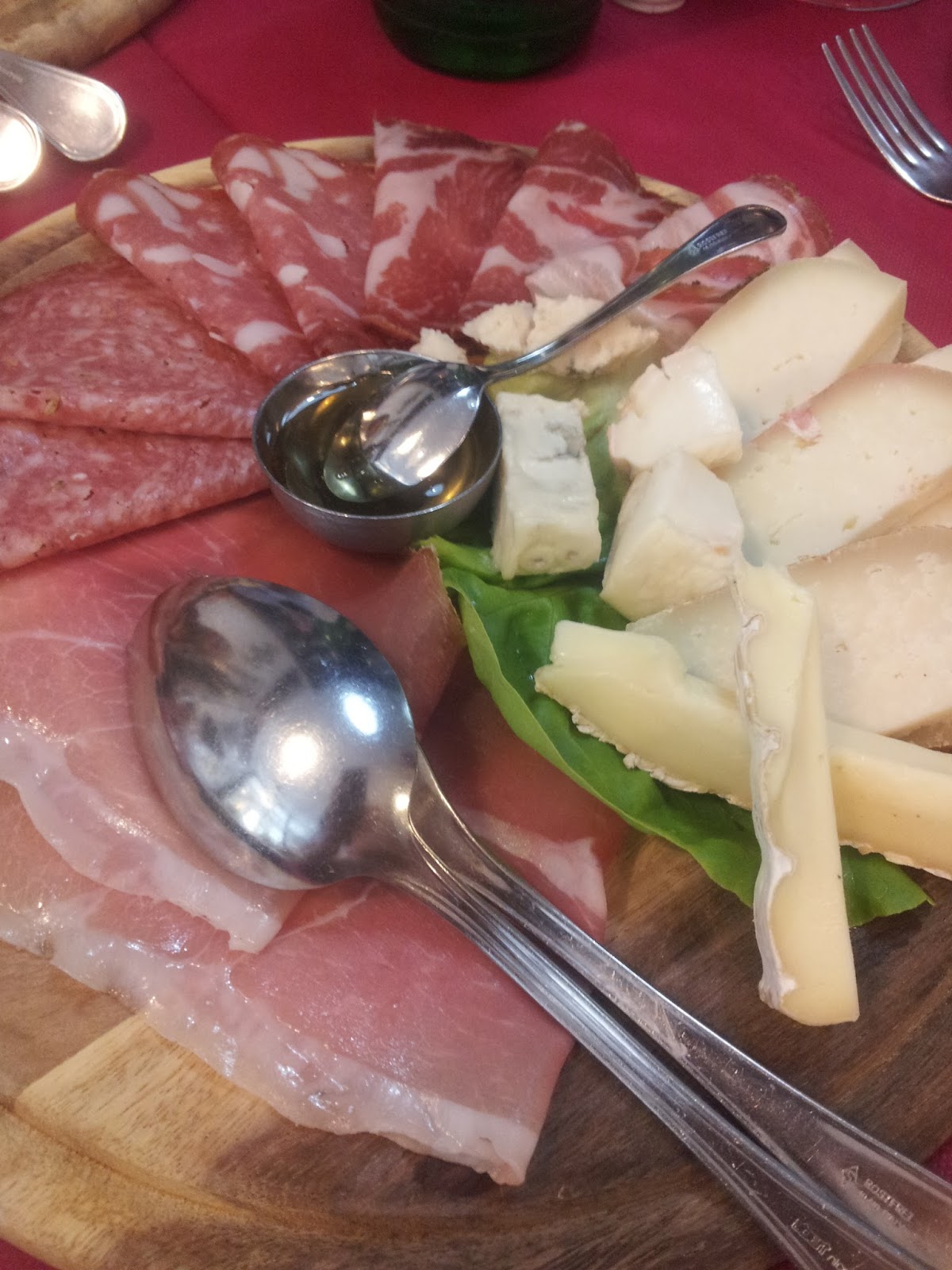 Abbiamo preso un antipasto e un secondo, il tutto accompagnato da dell’ottimo vino rosso, talmente ottimo che abbiamo rischiato di perdere il treno al ritorno: non volevamo più andar via!