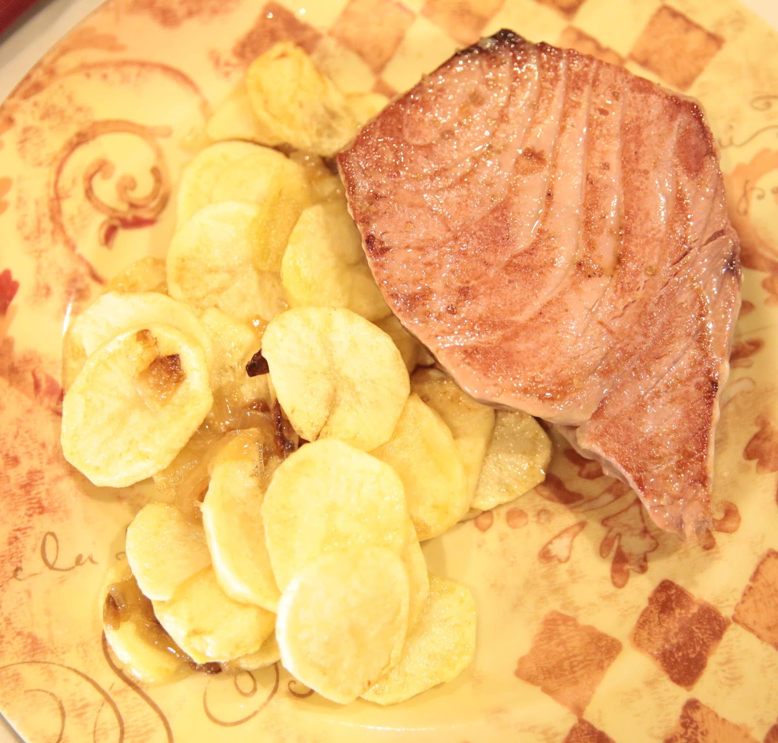 La prima sera ci siamo lasciati tentare da un saporitissimo e tenerissimo tonno e dalla carne di maiale iberico alla griglia. Il tutto accompagnato da pane e grissini tiepidi serviti insieme a burro aromatizzato, una squisitezza!