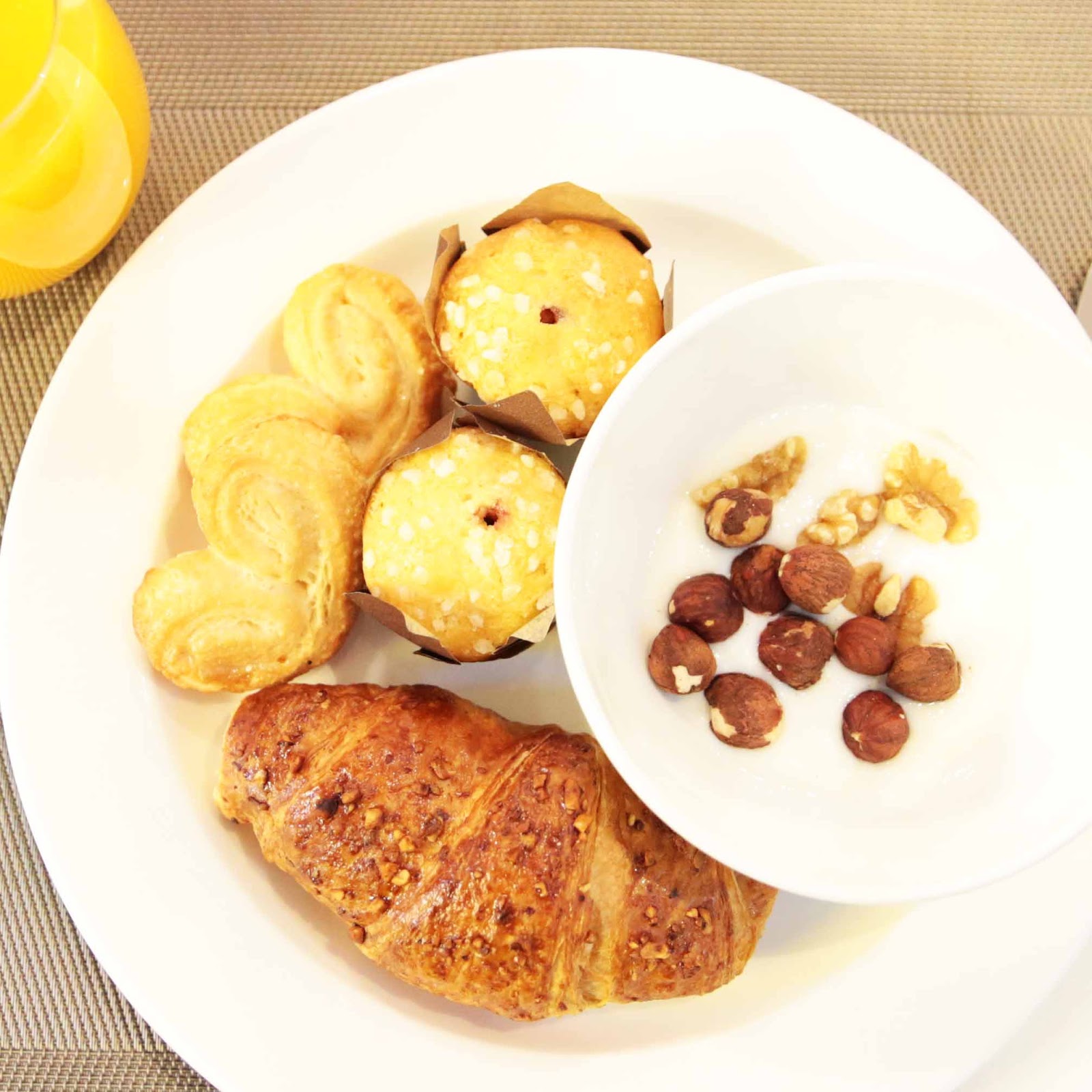 Se si sceglie di scendere nella sala della colazione si viene accolti da un ricco buffet con ampia scelta di dolci, salato e frutta. Anche la colazione in camera permette di avere tutto quello che si desidera infatti la sera precedente viene richiesto di compilare un elenco e scegliere ciò di cui si ha bisogno (bevande comprese), specificando anche l’orario desiderato per la consegna.