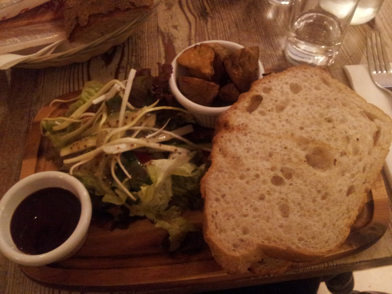 siamo lasciate tentare dai Burger: sono fatti a mano e serviti con insalata, patate arrostite e salsa (il primo con pane senza glutine).
