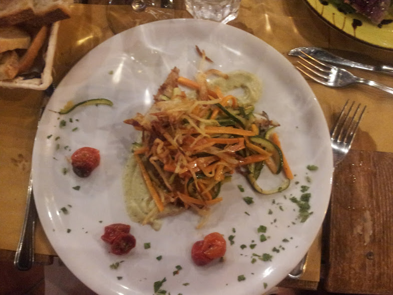 Pensando al secondo, io punto sempre al pescato del giorno al forno, che può essere orata, spigola, rombo, ricciola, servito con verdurine croccanti e qualche salsa particolare, oppure ad una tagliata di tonno al sesamo. Ci sono poi le classiche grigliate miste o fritture di pesce, in ogni caso la presentazione è sempre originale.