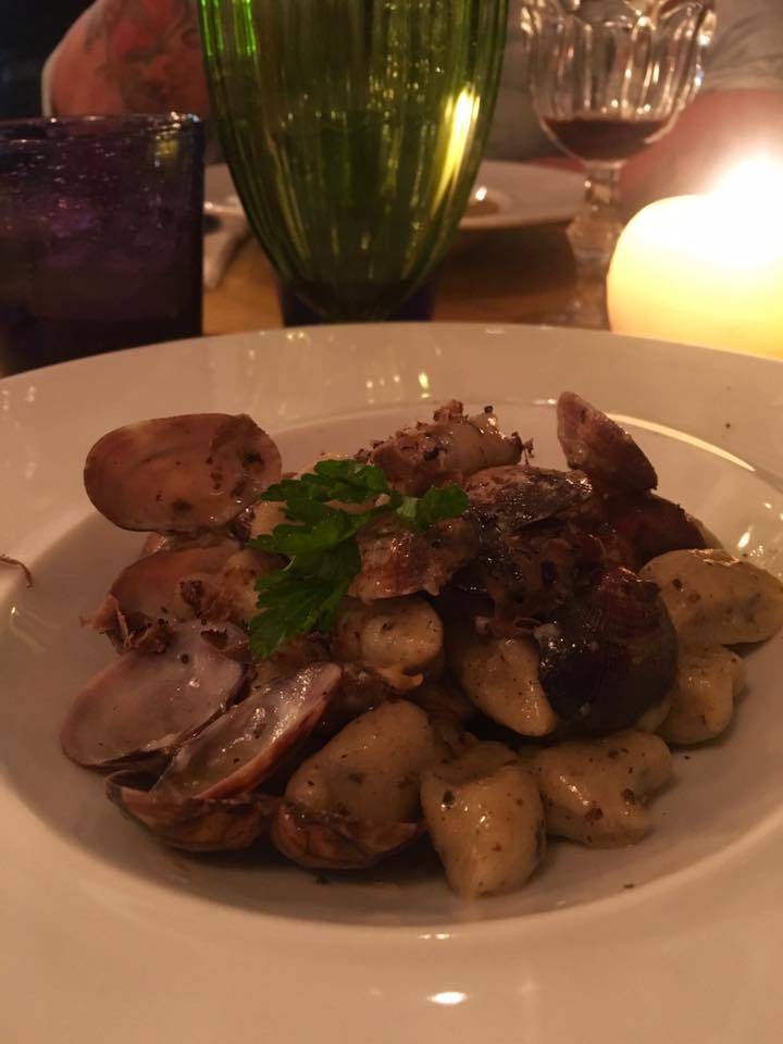 Per pranzo o cena si può spaziare un po’ su tutto; io quando vado preferisco mangiare pesce e la soluzione migliore per poter assaggiare di tutto un po’, secondo me, è l’antipasto Toscanelli, servito in modo molto carino, adatto soprattutto se si è più di due persone: i fritti, i marinati, i crudi, includendo le zuppe ed i ripieni.
