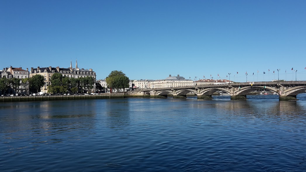 center and many restaurants lying along the River Nive, crossing it along with