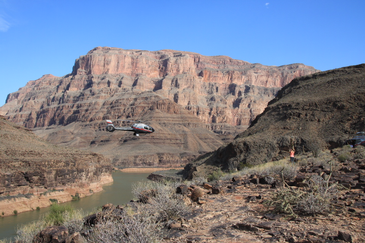 Il volo dura circa 40′ comprensivi di atterraggio sulle rive del fiume Colorado e un quarto d’ora di pausa per fotografie e passeggiate nel fondo del canyon con qualche acrobazia ed avvicinamento alle rocce da brivido!