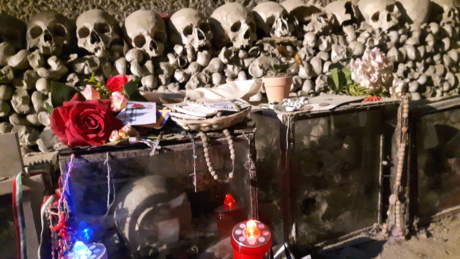 L’atmosfera esoterica del luogo, diviso in navate, racconta dell’anima religiosa ed insieme pagana della città. E’ il culto delle delle “anime pezzentelle”, una devozione popolare per i defunti, nei quali i napoletani identificano le anime del Purgatorio. La pietas per i defunti portava le donne napoletane ad adottare un teschio (capuzzella) ed a pregare per l’anonimo defunto, “anima pezzentella” cioè abbandonata, per ricevere in cambio protezione per la vita terrena.