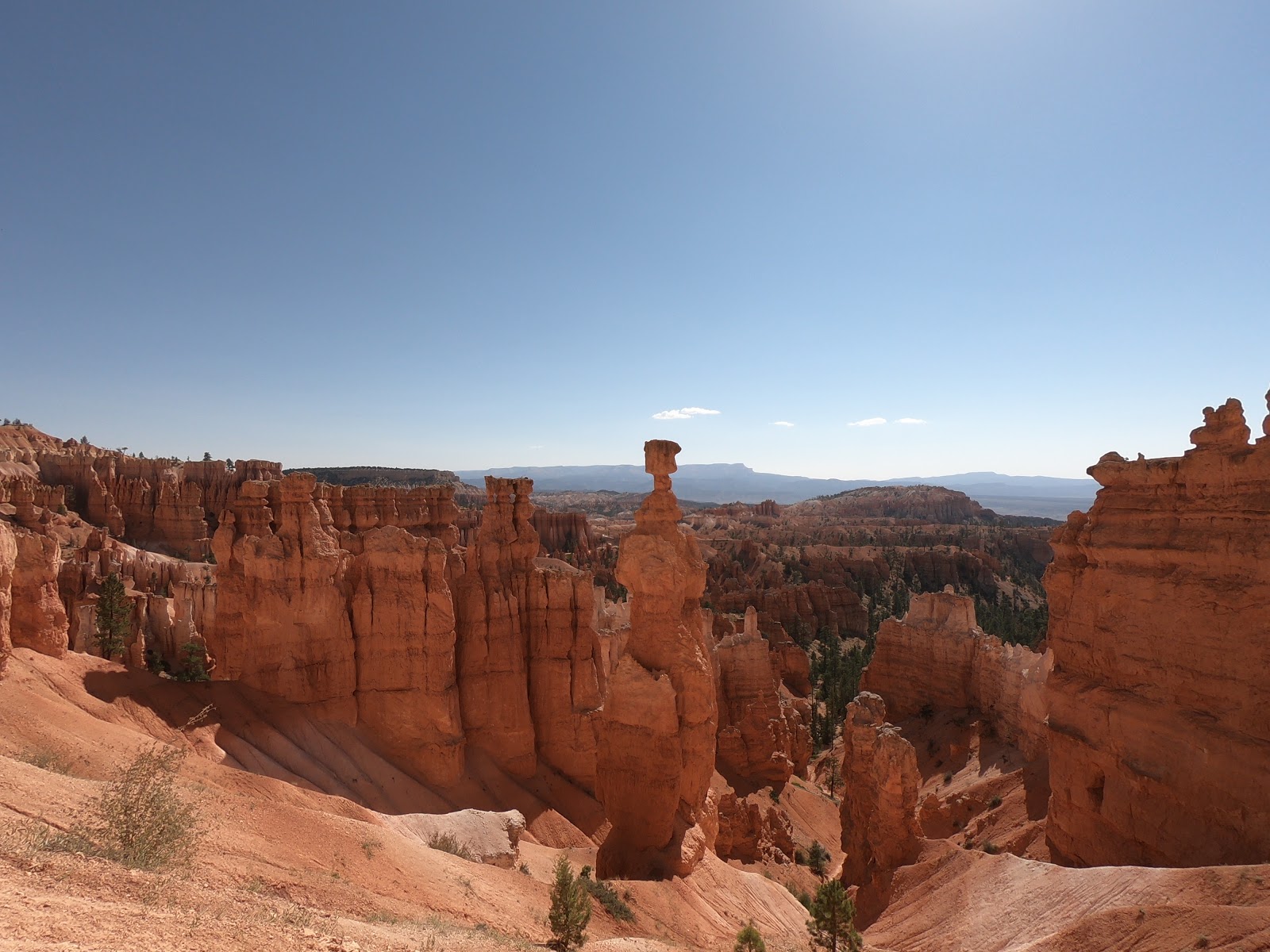 Day 11, interamente dedicato alla scoperta del Bryce Canyon National Park, uno dei parchi che ho atteso con maggiore trepidazione. Partiamo da Sunset Point (l’alba è passata già da un pezzo) e scendiamo lungo il Navajo Loop all’interno del canyon per poi proseguire lungo il Queen’s Garden Trail e risalire verso Sunrise Point e ammirare di nuovo l’anfiteatro dall’alto. Bellissimi anche gli altri view point del parco, fatti in macchina dove il rosso delle rocce del Bryce si immerge nel verde dei pini che caratterizzano questo parco. Giretto a Bryce city ed al famoso Ruby’s Inn Lodge (storico motel fondato agli albori del Parco Nazionale di Bryce) e ai negozi intorno dalla perfetta atmosfera western.
